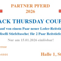 Whether it’s exclusive discounts, small giveaways, or special promotions – on Black Thursday, our exhibitors at PARTNER PFERD will be offering a wide range of deals for a truly enjoyable shopping experience.